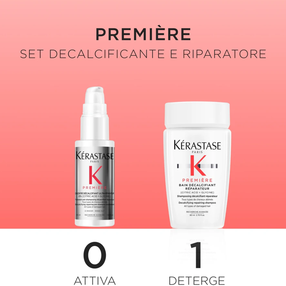 Première Bain Décalcifiant Réparateur (80 ml): Breng aan op nat haar bovenop de pre-shampoo. Masseer, emulgeer en spoel grondig uit.
