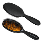 Rock & Ruddle Haarborstel Black Stardust is een hoogwaardige kwaliteitsborstel met een prachtige kleur. Deze haarborstel is gemaakt van fijne natuurlijke varkensharen. Door deze haren helpt de borstel de natuurlijke oliën, die worden geproduceerd door de hoofdhuid, te verdelen over de gehele lengte van het haar. Hierdoor krijgt het haar een prachtige, natuurlijke glans. In elke tand van de borstel zit daarnaast een nylon kern die ervoor zorgt dat klitten makkelijk verdwijnen, zelfs bij dik haar. De rubberen strip geeft net genoeg soepelheid zodat er niet aan het haar wordt getrokken tijdens het borstelen, waardoor het haar niet wordt beschadigd. Deze borstel is bovendien geschikt voor alle haartypes en tevens verkrijgbaar in een kleinere maat zodat u de borstel overal mee naar toe kunt nemen.