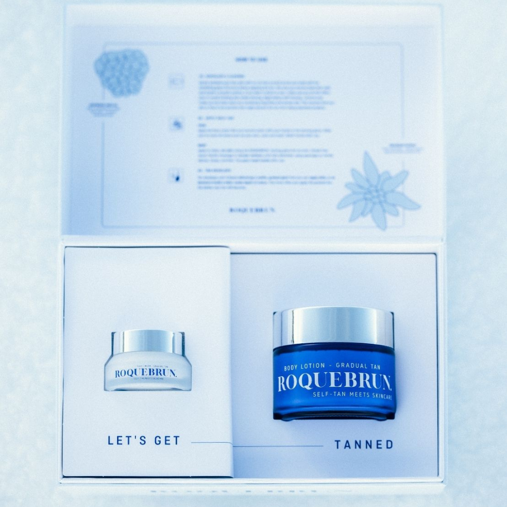 De ROQUEBRUN. Tan Out of Ten Christmas Set bevat alles wat je nodig hebt voor een natuurlijke, egale en opbouwbare bruining, van gezicht tot lichaam. Deze limited edition set combineert onze ROQUEBRUN. Night Restore Face Cream Gradual Tan (15 ml), de Gradual Tan Body Lotion (100 ml) en een zachte, herbruikbare tanning glove voor een vlekkeloze applicatie. Perfect als cadeau voor iemand anders, of gewoon voor jezelf!