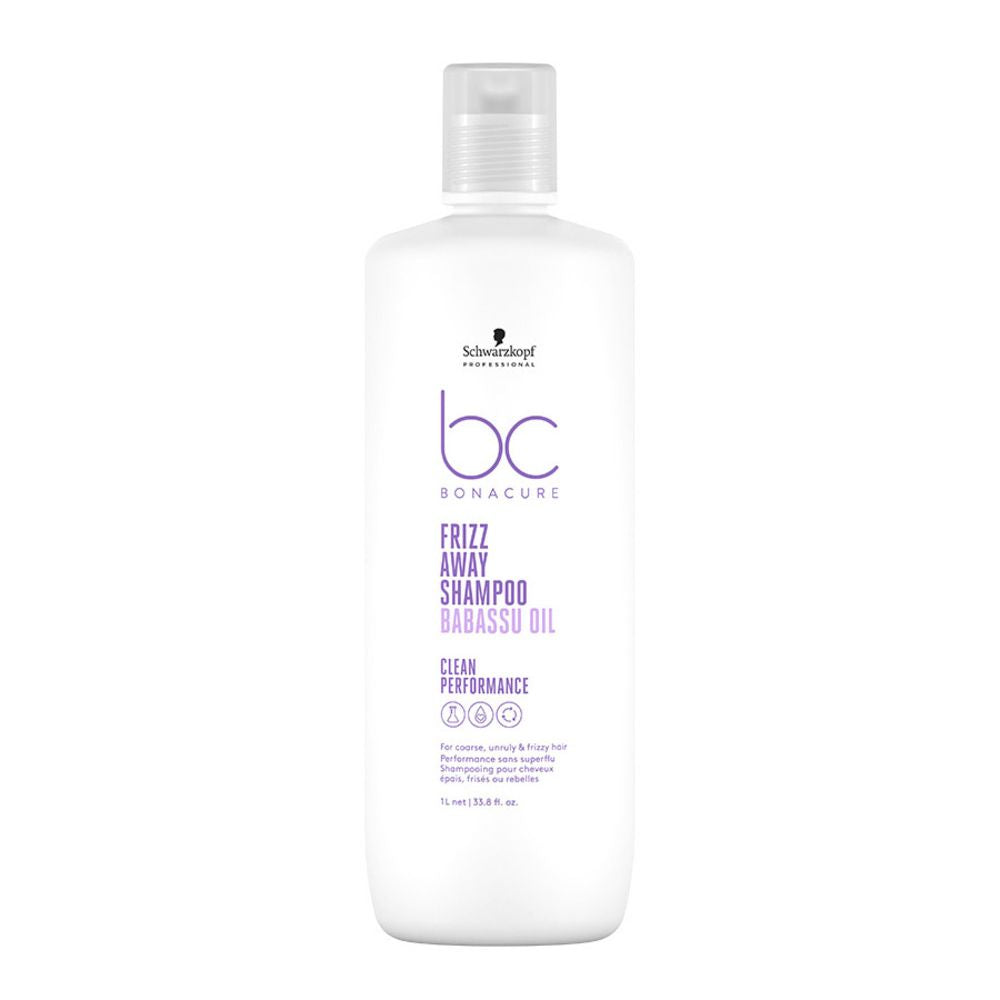Schwarzkopf Professional Bonacure Frizz Away Shampoo is een sulfaatvrije shampoo die pluizig haar vermindert. Deze vegan shampoo is speciaal ontwikkeld om weerbarstig haar mild, maar effectief te reinigen. Het haaroppervlak wordt geëgaliseerd en verzacht waardoor pluis tot 72 uur effectief wordt verminderd. De formule bevat babassu-olie om de elasticiteit en glans van het haar verbeteren. Babassu-olie is rijk aan antioxidanten en houdt vocht vast zodat het haar glad en pluisvrij wordt.
