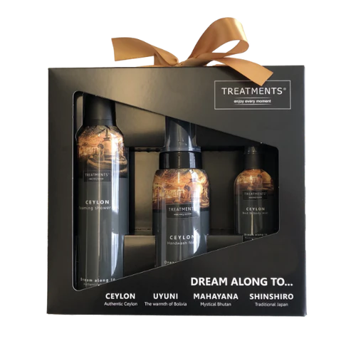 De Treatments Giftbox Revive - Ceylon biedt een complete verzorgingservaring voor huid, haar en zintuigen. Deze luxe set bevat een romige Hair & Body Showerfoam, een milde Shampoo en een verkwikkende Bed & Body Mist, waarmee je jezelf en je omgeving hult in de karakteristieke Ceylon geur. Ontdek de warme en uitnodigende geurcombinatie van shea noten, sandelhout, patchoeli, fruitbloesem en jasmijn, die de authentieke sfeer van Ceylon weerspiegelt.