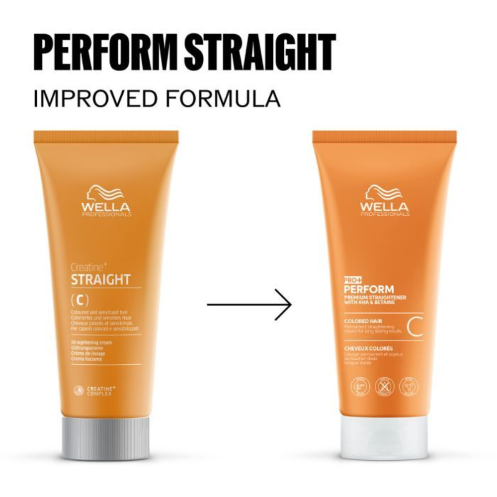 De Wella Perform Straightening Cream C is een vegan, professionele straightening crème die speciaal is ontwikkeld voor gekleurd haar. Deze formule maakt deel uit van de vernieuwde Wella Perform-lijn, de opvolger van de bekende Creatine+ producten. Dankzij de Bond Builder Technology wordt de haarstructuur versterkt tijdens het straightening proces, terwijl het haar optimaal beschermd blijft tegen schade.