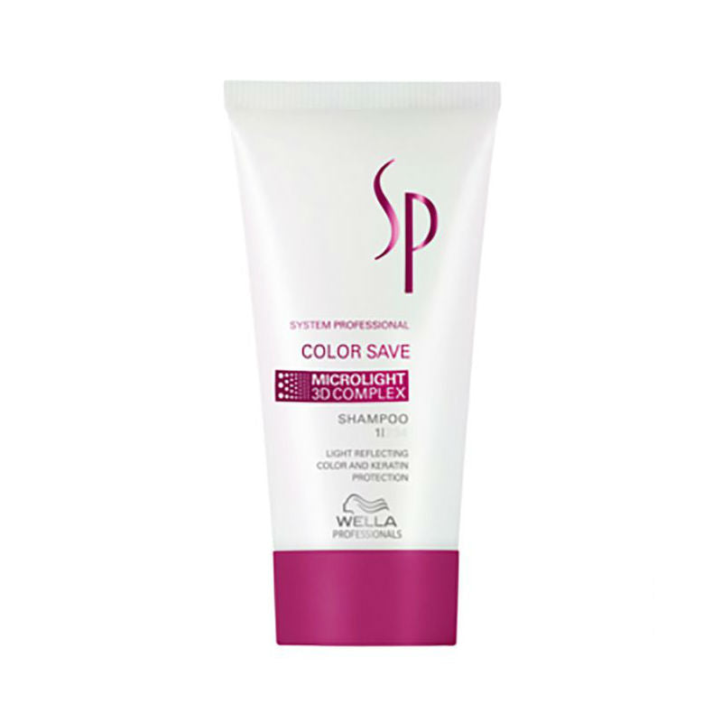 Wella SP Color Save Shampoo is een shampoo die speciaal ontwikkeld is voor gekleurd haar. De shampoo zorgt voor een langdurige kleurglans en beschermt tegen kleurvervaging en –verandering. Ook zorgt dit product ervoor dat gekleurd haar er weer gezond en verzorgd uitziet. Wella SP Color Save Shampoo levert extra voeding en een mooie glans. De formule heeft een UV-filter, waardoor het haar extra kleurbescherming krijgt tegen UV-licht. Dermatologisch getest op huidvriendelijkheid.