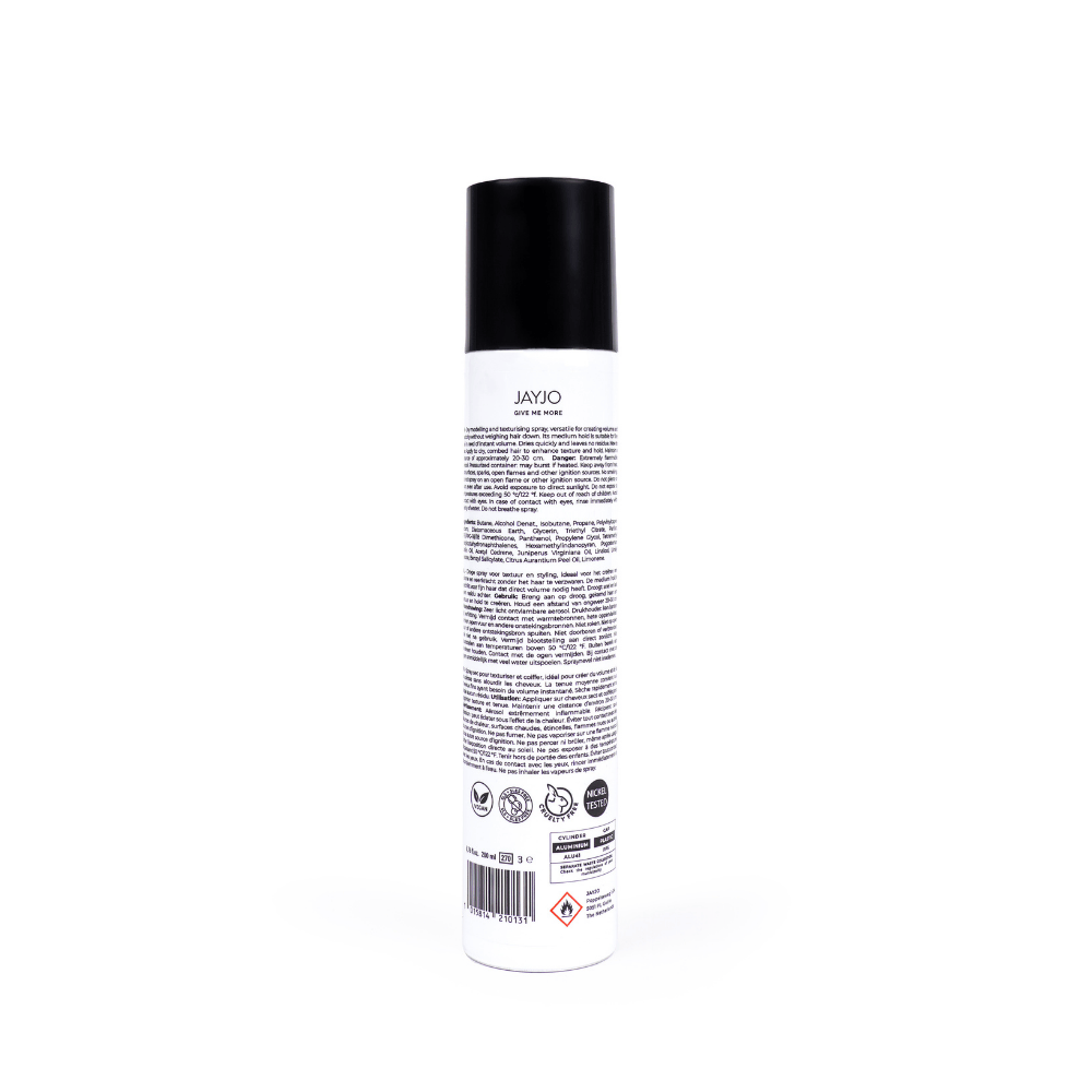 JAYJO Give Me More Texture And Volume Spray is de ideale haarspray voor wie direct volume, textuur en een natuurlijke hold wil zonder het haar te verzwaren.