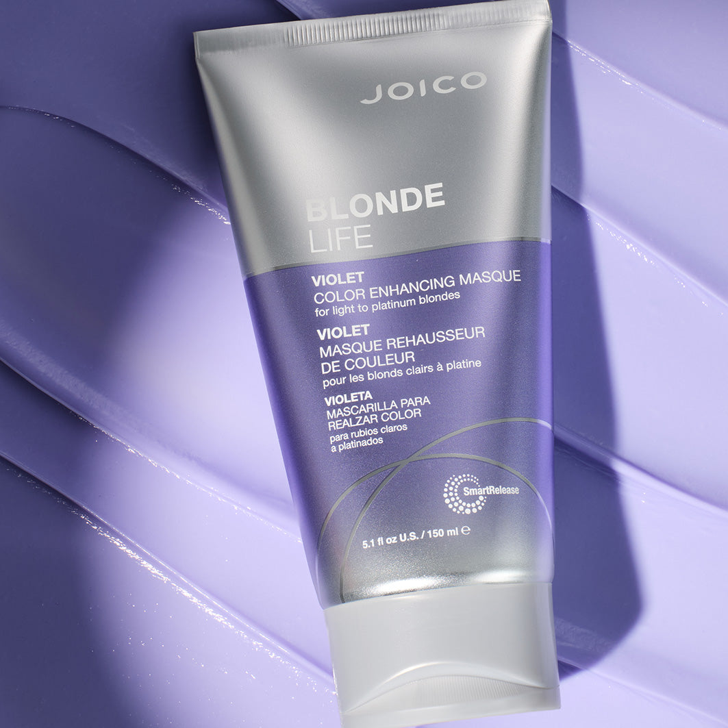 Joico Blonde Life Color Masque Violet 150ml is een intensief verzorgend haarmasker dat speciaal is ontwikkeld voor blond haar. Dit masker neutraliseert ongewenste gele en koperachtige tonen, waardoor je haar een frisse, koele blondtint krijgt. Het voedt en versterkt het haar, vermindert breuk en zorgt voor een zachte, glanzende finish. Ideaal voor geblondeerd, natuurlijk lichtblond haar of highlights die hun kleur helder, fris en gezond willen houden.