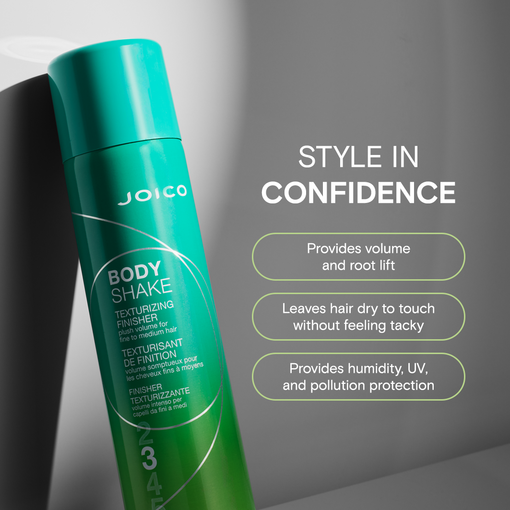 De Joico Style & Finish Body Shake Texture Spray is een snel drogende volume spray die speciaal ontwikkeld is voor dun, fijn tot normaal haar. Deze spray absorbeert overtollige oliën bij de haarwortels en tilt het haar direct op, waardoor je haar vol, luchtig en goed gelift aanvoelt. De matterende finish zorgt voor extra volume en maakt je kapsel voller, terwijl de zachte afwerking je de vrijheid geeft om je haar opnieuw te stylen wanneer je dat wilt.
