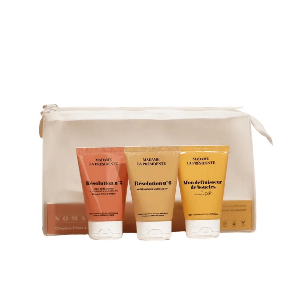 De kit biedt een ideale kans om de voedende en verzorgende producten van Madame La Présidente uit te proberen, zodat je ook onderweg je krullen gezond, zacht en goed gedefinieerd kunt houden.