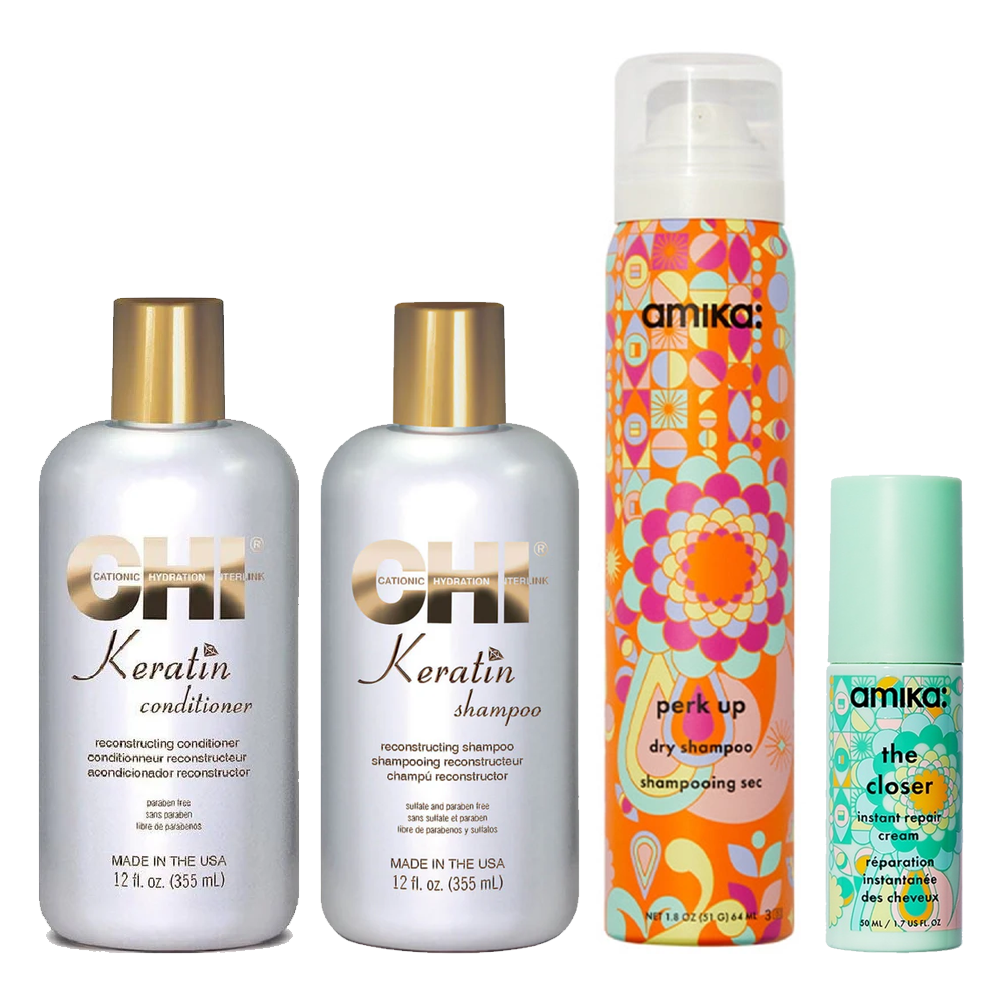Stap1: Reinigen met CHI Keratin Shampoo. Breng een kleine hoeveelheid aan op nat haar. Masseer de shampoo zachtjes in tot een rijk schuim en spoel grondig uit. Voor optimaal resultaat, vervolg met CHI Keratin Conditioner.