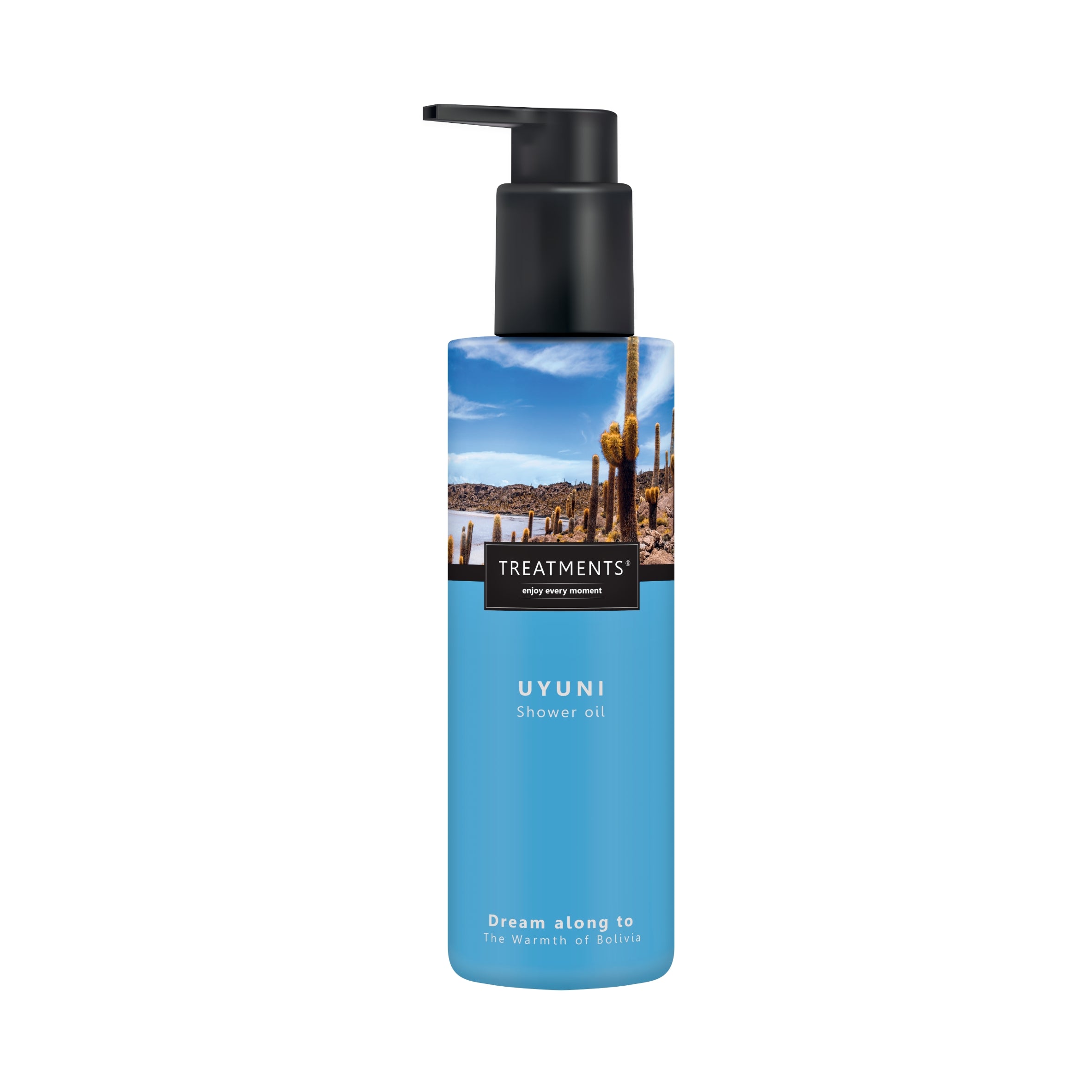 De TREATMENTS® Shower Oil - Uyuni is perfect voor iedereen die zijn douchebeleving wil verheffen naar een moment van pure wellness. De warme geur van eucalyptus, witte munt en een vleugje limoen omhult je zintuigen, en tovert je badkamer om tot een oase van rust en ontspanning.
