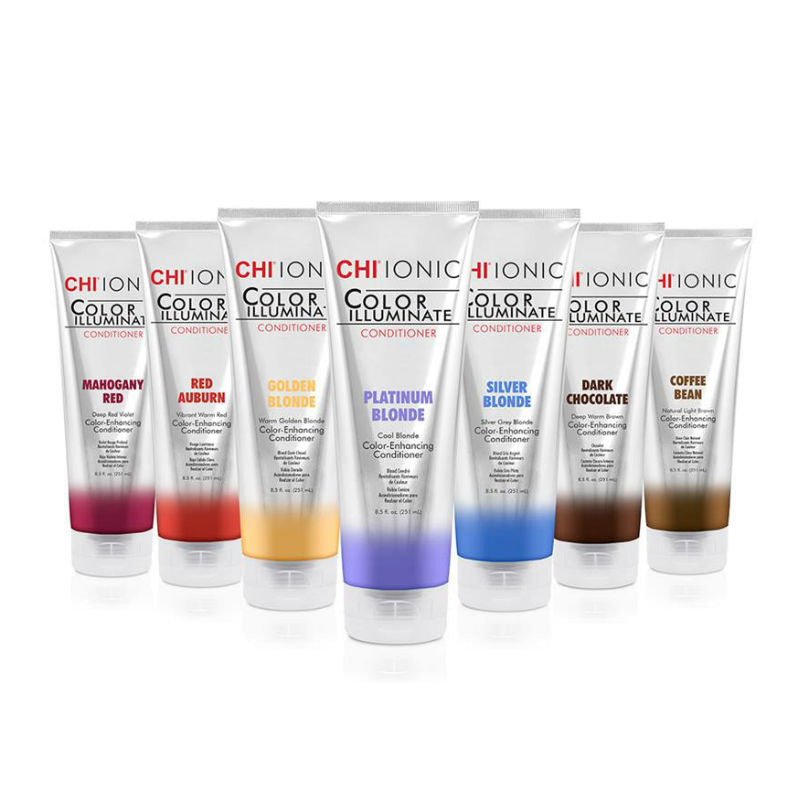 Conditioners van CHI Color Illuminate zorgen voor een aanvullende kleurverzorging tussen kappersbeurten door. De kleurpigmenten in de conditioner intensiveren de gewenste haarkleur en maskeren de ongewenste. CHI Color Illuminate geeft het haar kleurstoffen of –tinten in één simpele stap als conditioner. De conditioner bevat het Silk Amino Complex met onder andere ceramic, aminozuur en zijde die diep tot de haarschubben doordringen en zo het haar diepe kleurverrijking en hydratatie bieden. CHI Color Illuminate is geschikt voor zowel gekleurd als natuurlijk haar.