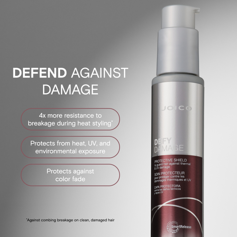 Wil je je haar beschermen tegen hitte UV-straling dagelijkse schadelijke invloeden en haabreuk verminderen? De Joico Defy Damage Protective Shield biedt de ultieme bescherming voor je haar. De krachtige leave-in lotion beschermt je haar tegen hitte tot wel 230°C waardoor het ideaal is voor gebruik met stijltangen föhns en krultangen. Het helpt ook om je haarkleur te behouden en je haar gezond en stralend te houden.