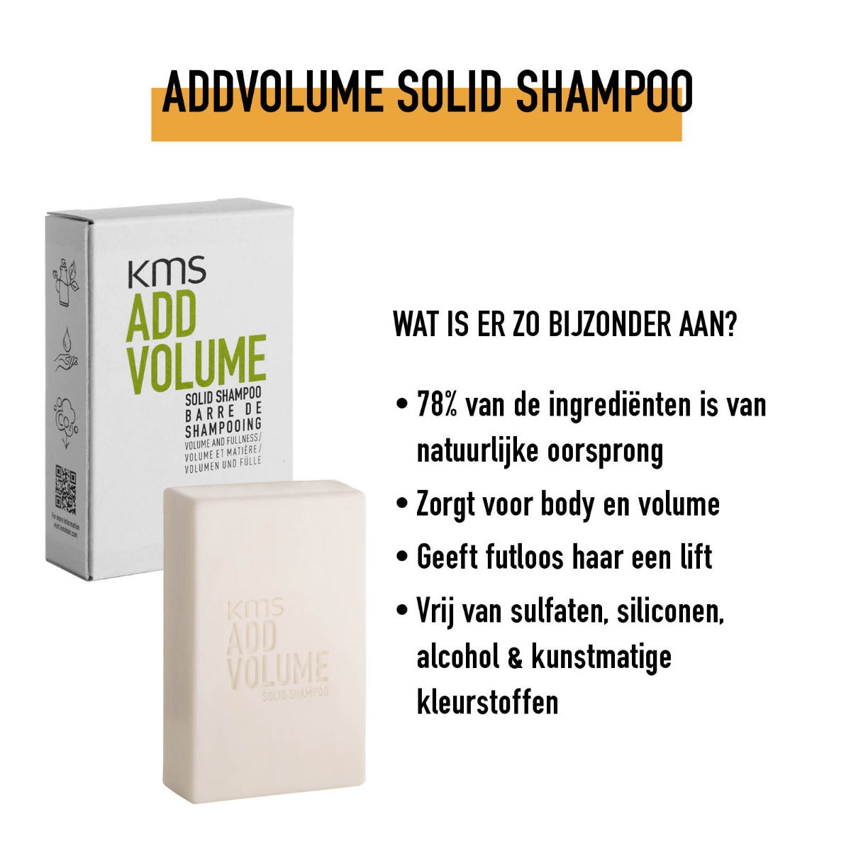 Met de AddVolume Solid Shampoo is fijn en slap haar verleden tijd! Deze shampoo van KMS zorgt voor een prachtige volumineus kapsel