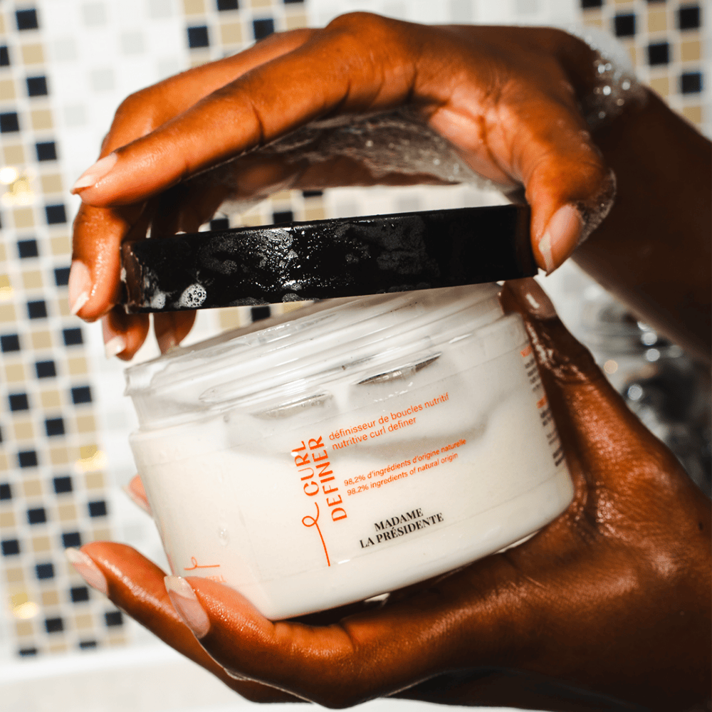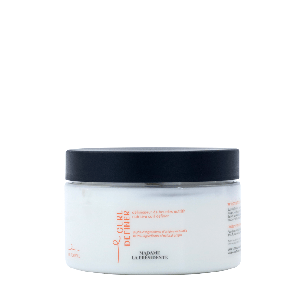Madame La Présidente Curl Definer 250ml is een voedende curl enhancer die perfect gedefinieerde krullen geeft zonder ze stijf of “kartonachtig” te maken. Het product maakt de krullen soepeler, zachter en natuurlijk veerkrachtig.