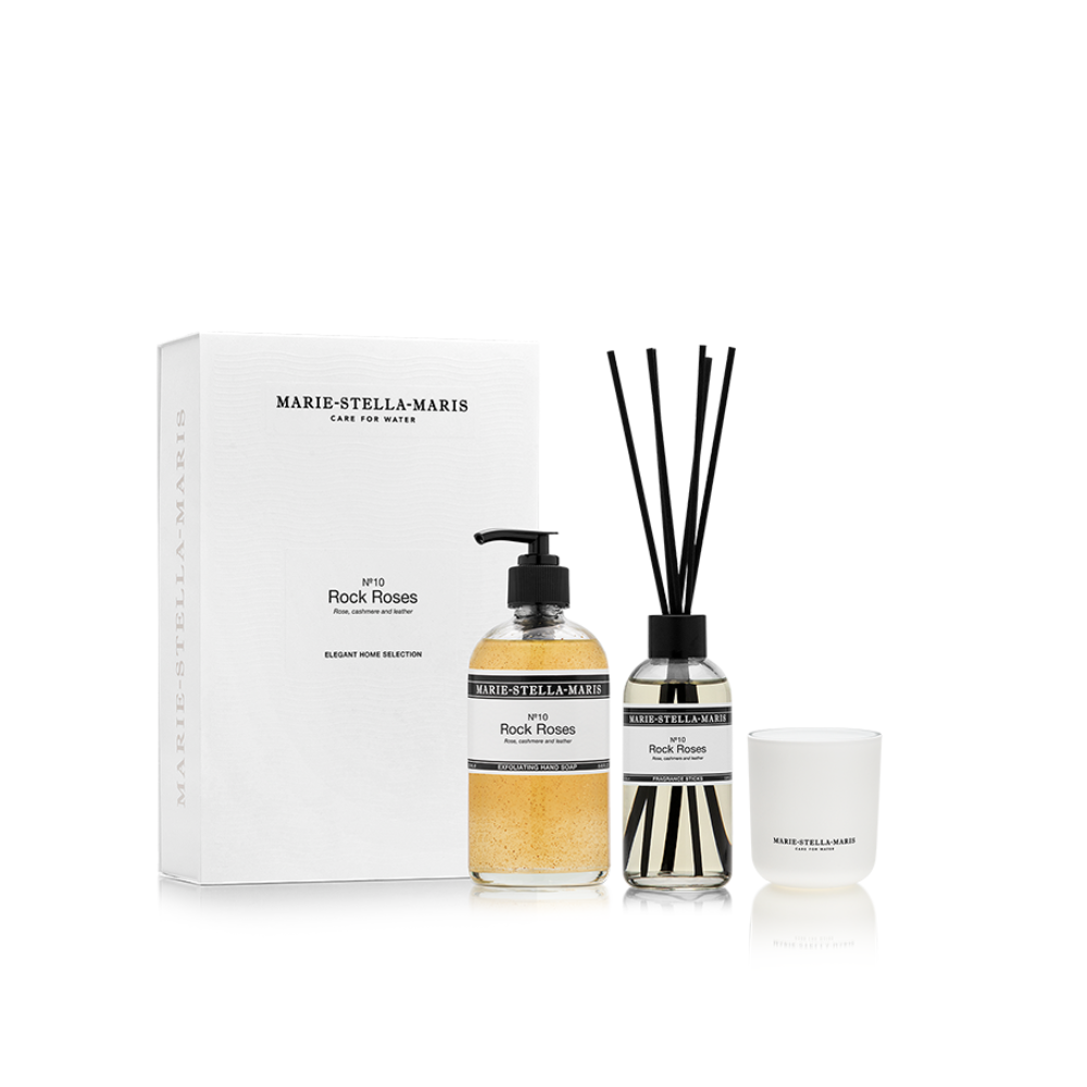 Breng warmte en elegantie in huis met de Marie-Stella-Maris Elegant Home Set Rock Roses, een stijlvolle giftset die zorgt voor een verfijnde geurbeleving én een moment van pure verwennerij. De combinatie van handzeep, geurstokjes en een luxe geurkaars vult je interieur met comfort en een gevoel van thuis. De contrastrijke geur van Rock Roses — van helder en bloemig tot diep en hypnotiserend — creëert een sfeer die zowel uitnodigend als verleidelijk is.