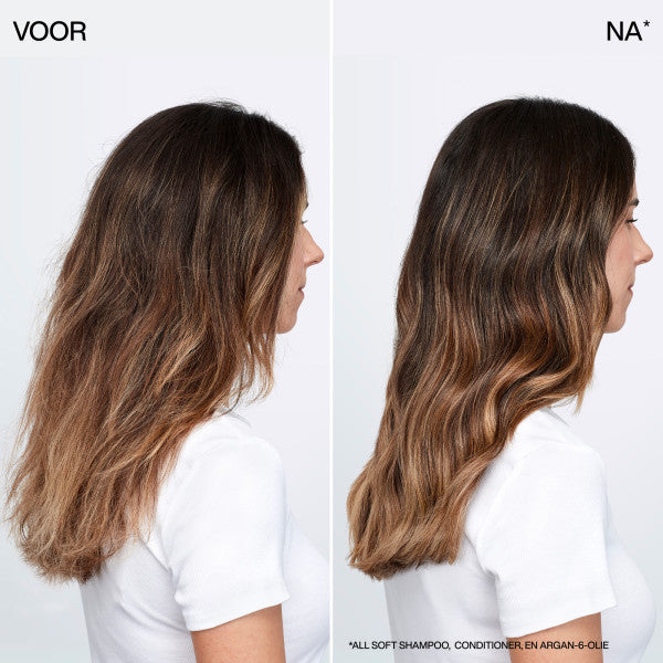 Redken All Soft Argan Oil is een intensieve leave-in haarolie die speciaal ontwikkeld is voor droog, dof en broos haar. Dankzij de rijke formule met arganolie en 12% Hydratatie Complex biedt deze haarolie veelzijdige verzorging: van diepe hydratatie en zijdezachte glans tot hittebescherming en pluiscontrole. Het resultaat is zichtbaar gezonder, soepeler en stralender haar dat tot drie dagen lang handelbaar blijft.