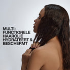 De arganolie, rijk aan antioxidanten, vitamine E en essentiële vetzuren, herstelt de elasticiteit en geeft dof haar een prachtige glans. De 12% Hydratatie Complex hydrateert intensief en zorgt voor een zachte, veerkrachtige haarstructuur zonder te verzwaren. Daarnaast beschermt deze olie tegen hitte tot 230°C en vermindert het de zichtbaarheid van gespleten punten. De formule smelt direct in het haar, met een frisse geur van honing, peer en citroen, bloemige tonen van lelietje-van-dalen en roos, en een warme basis van zachte muskus.