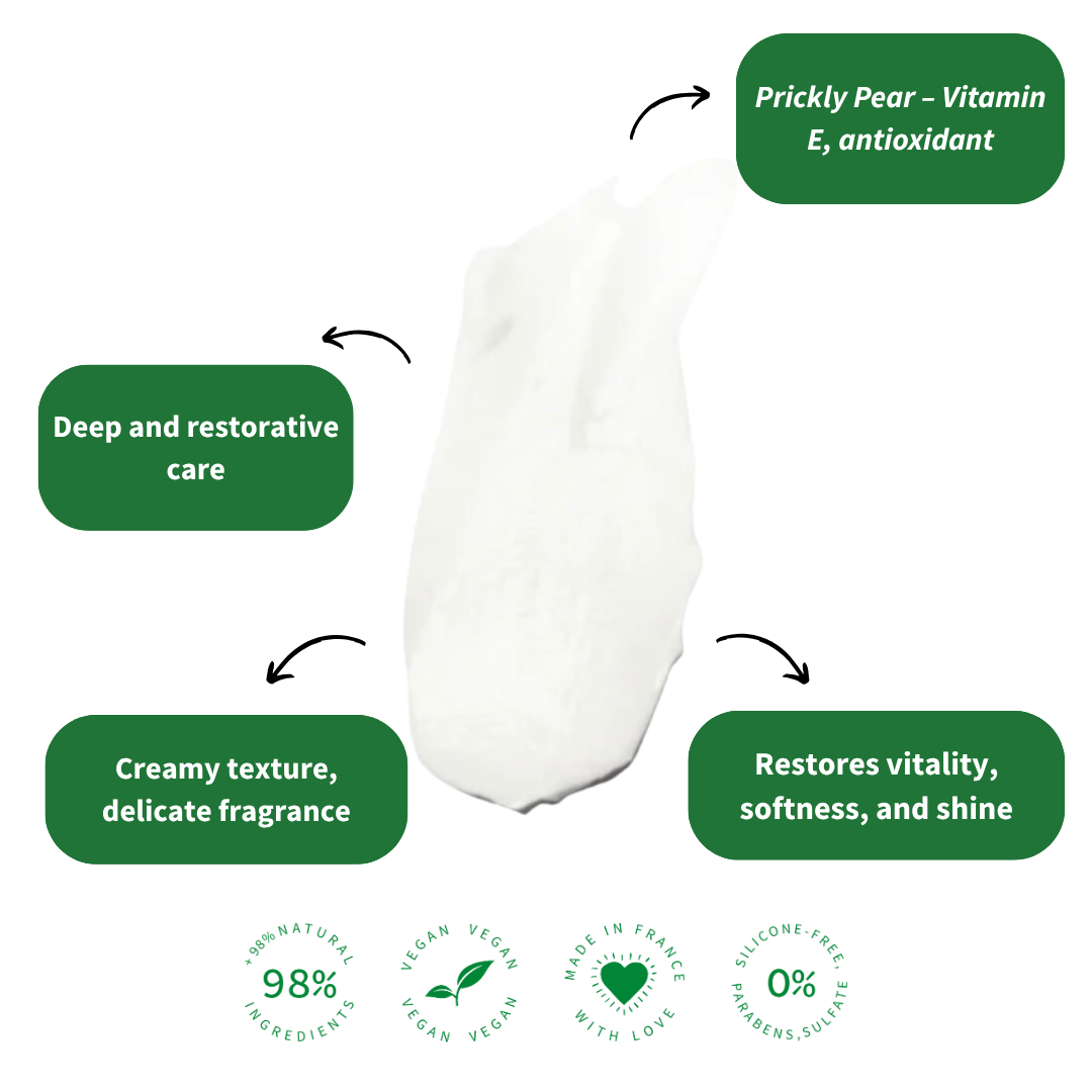 Shaeri Intense Care Mask alle effectiviteit van cactusvijg is geconcentreerd in dit intens voedende masker dat je haar diep hydrateert en herstelt. Gespleten punten en droge uiteinden behoren tot het verleden: van wortel tot punt wordt je haar gevoed en versterkt, zonder dat het zwaar aanvoelt. Ideaal voor golvend, krullend en kroezend haar, maar ook voor droog, beschadigd, gekleurd of futloos haar dat extra verzorging nodig heeft.