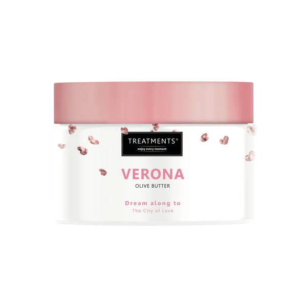 De Treatments® Olive Butter Verona combineert luxe butters en rijke oliën om de huid intensief te voeden, hydrateren en verzorgen. Deze heerlijke Olive Butter helpt de droge huid te verzachten en ondersteunt tegelijkertijd het vertragen van het verouderingsproces. Breng de Olive Butter aan op je huid en omhul jezelf met de betoverende Verona geur, die je meeneemt naar zonnige zomerdagen in het schitterende heuvelachtige gebied rond de stad van de liefde. Voeg de Olive Butter toe aan je huidverzorgingsroutine en geef je huid het extra beetje verzorging en liefde dat ze verdient.