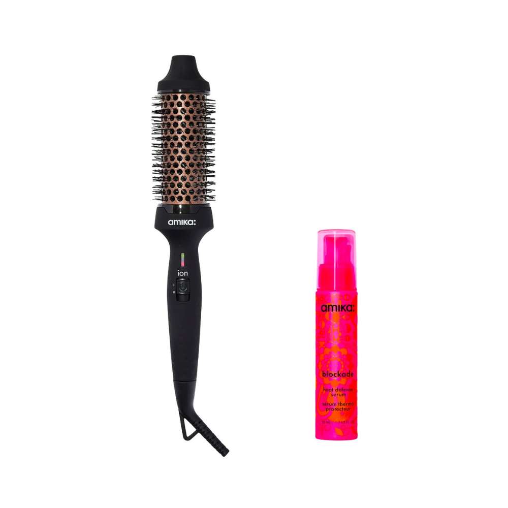 Creëer een professionele blowout vanuit huis met de amika blowout & protect duo. Deze set combineert de innovatieve Blowout Babe Thermal Brush met het voedende Blockade Heat Defense Serum voor een glad, volumineus en pluisvrij resultaat – zónder schade aan je haar.