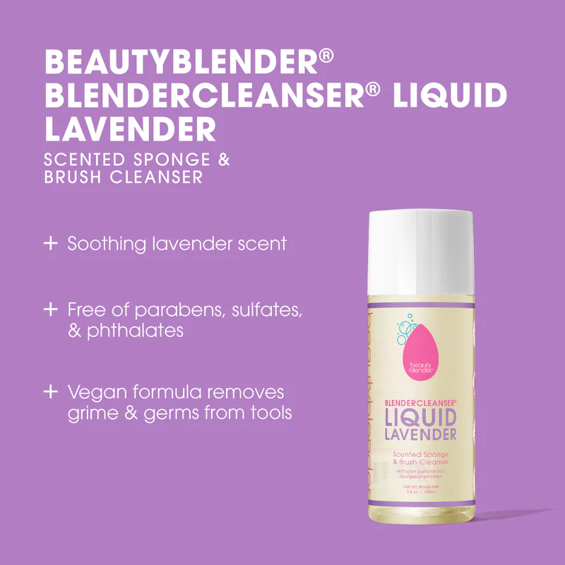 Beautyblender Liquid Blendercleanser Lavender – Zachte reiniging en maximale bescherming. Geef je make-uptools de verzorging die ze verdienen met de Liquid Blendercleanser Lavender. Deze supergeconcentreerde, natuurlijke en vegan reiniger is speciaal ontwikkeld om de kwaliteit van je Beautyblender® én make-upkwasten te behouden, terwijl hij grondig reinigt en beschermt tegen schadelijke bacteriën. Zonder kleurstoffen of huidirriterende stoffen, met een subtiele lavendelgeur voor een extra fijne schoonmaakroutine.
