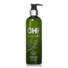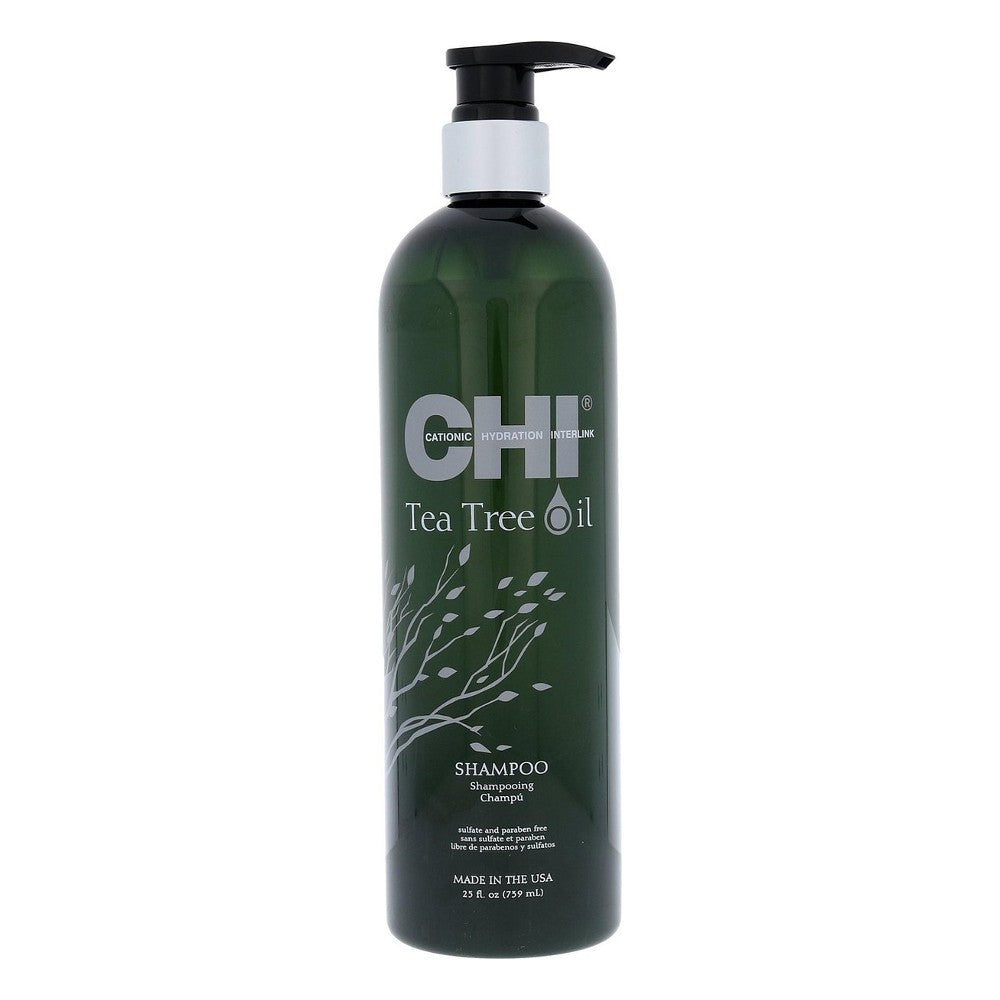 De CHI Tea Tree Oil Shampoo is verrijkt met oliën die er voor zorgen dat het haar en hoofdhuid gereinigd wordt van onzuiverheden. De shampoo bevat belangrijke ingrediënten, Tea Tree Oil, een natuurlijk antioxidant die poriën ontstopt, verwijderd en er voor zorgt dat de hoofdhuid beter aanvoelt. Daarnaast bevat CHI Tea Tree Shampoo, Peppermint Oil, die zorgt voor evenwicht, verfrissing en verlichting van de hoofdhuid. Ook bevat de shampoo zijde, voor een prachtige glans. Tot slot bevat CHI Tea Tree Shampoo Kamille, die er voor zorgt dat de kracht en veerkracht van het haar beschermt wordt.