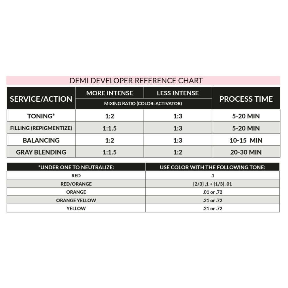 Difiaba Developers zijn verkrijgbaar in vier verschillende formules (1,5%, 3%, 6%, 9% en 12%). Wilt u uw haar donkerder verven, dan is 3% voldoende. Wilt u een of twee tinten lichter, kies dan 6%. Wilt u meerdere tinten lichter, dan heeft u 9% of 12% nodig.