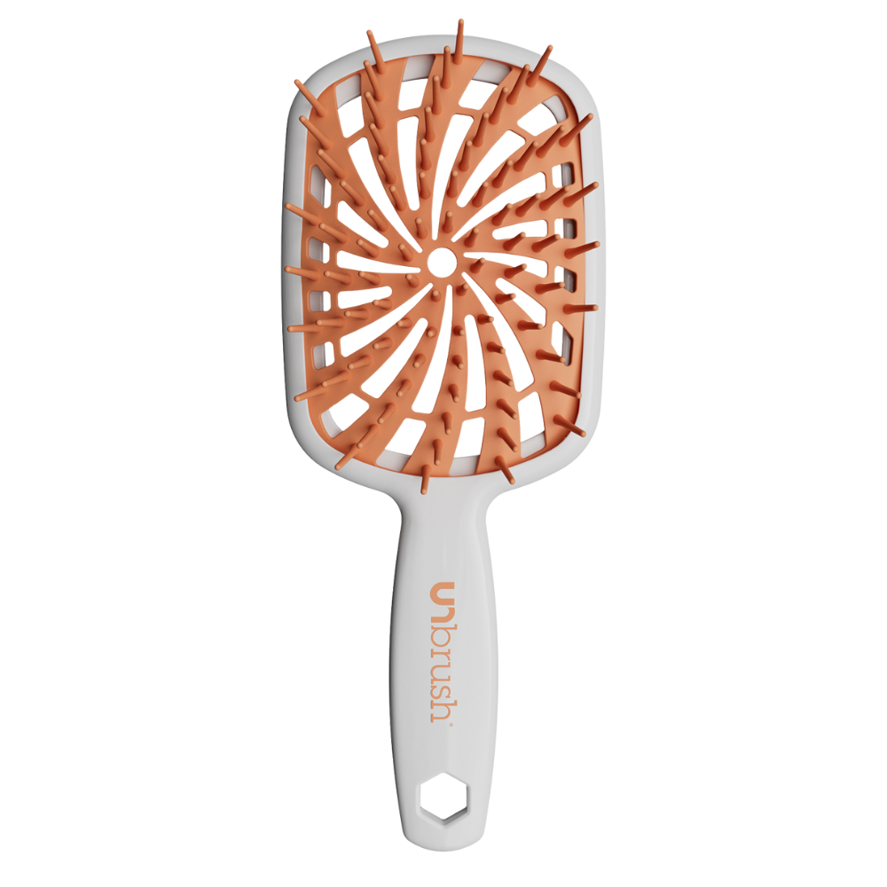 Ontdek de nieuwste generatie van de beste detangling borstel: de UNbrush Detangling Hair Brush Plus White Orange Sherbet. Deze vernieuwde borstel is speciaal ontwikkeld voor fijn en kwetsbaar haar, met een innovatieve spiraalcushion en een unieke mix van 84 UltraFlex-borstels. Het resultaat? Zacht ontwarren, minder haarbreuk en extra zorg voor gevoelige lokken.