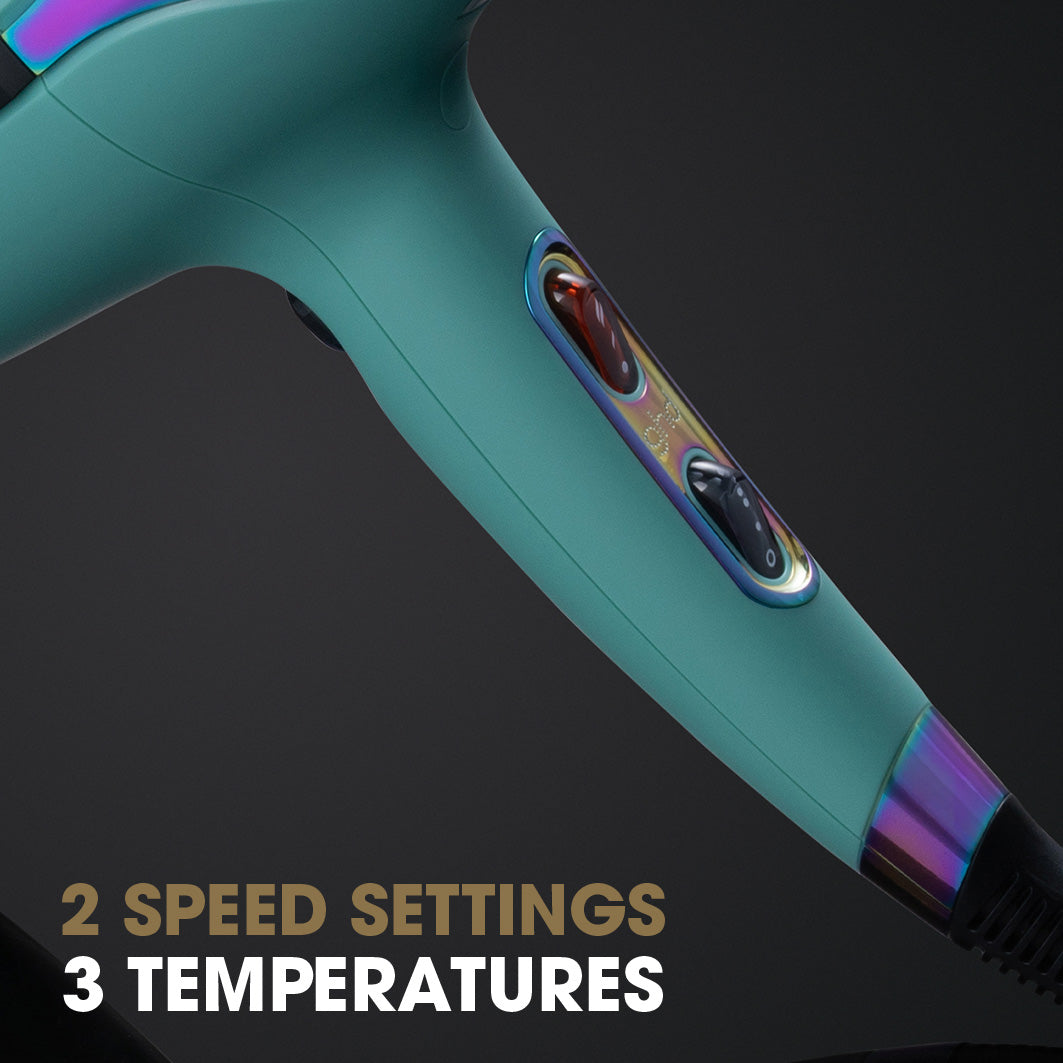 De krachtige borstelloze motor levert een luchtstroom van 120 km/u, waardoor je haar veel sneller droogt dan met een reguliere föhn. Tegelijkertijd zorgt het op maat gemaakte akoestische systeem voor lage geluidsniveaus tijdens gebruik. Het lichtgewicht en ergonomisch uitgebalanceerde ontwerp maakt het föhnen comfortabel en moeiteloos. Met variabele temperatuurstanden en een koude luchtstoot om je look te fixeren, heb jij volledige controle over jouw styling.