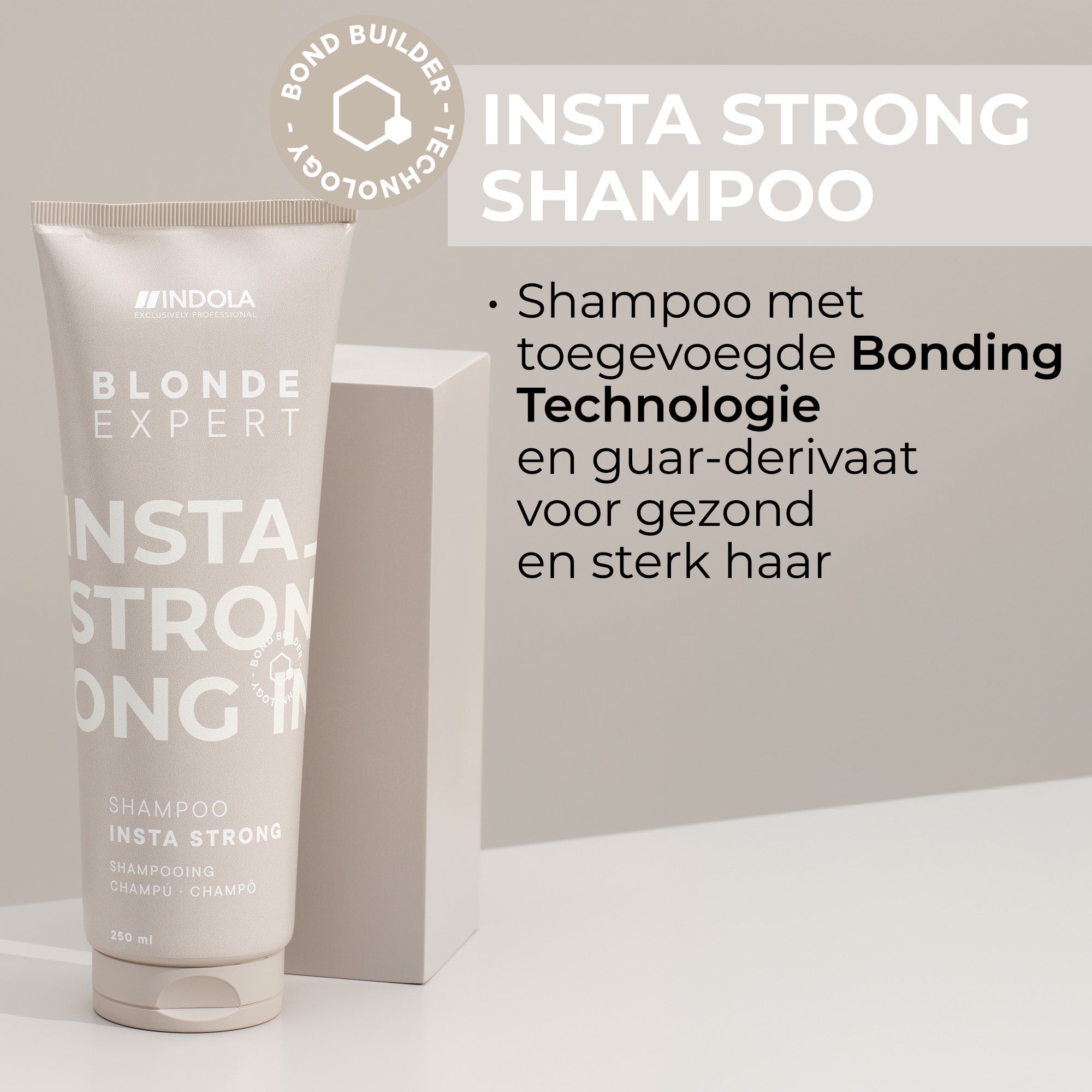 De Indola Blonde Expert Insta Strong Shampoo is een versterkende, milde shampoo die speciaal is ontwikkeld voor geblondeerd en gekleurd haar. Deze vegan formule reinigt het haar zachtjes terwijl het de haarvezel van binnenuit herstelt. Perfect voor blondines die hun haar willen verzorgen na het blonderen of oplichten, vermindert deze shampoo haarbreuk en revitaliseert het haar voor een gezondere uitstraling. Na gebruik voelt je haar sterker, glanzender en heerlijk gehydrateerd aan, met een gelijkmatige textuur van wortel tot punt.