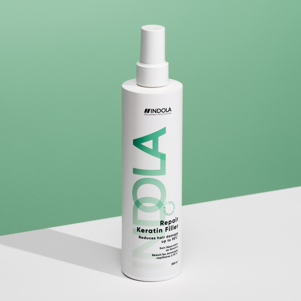 Indola Repair Keratin Filler 300 ml reinigt en herstelt het haar. Het voelt zijdezacht aan en is makkelijk doorkambaar.