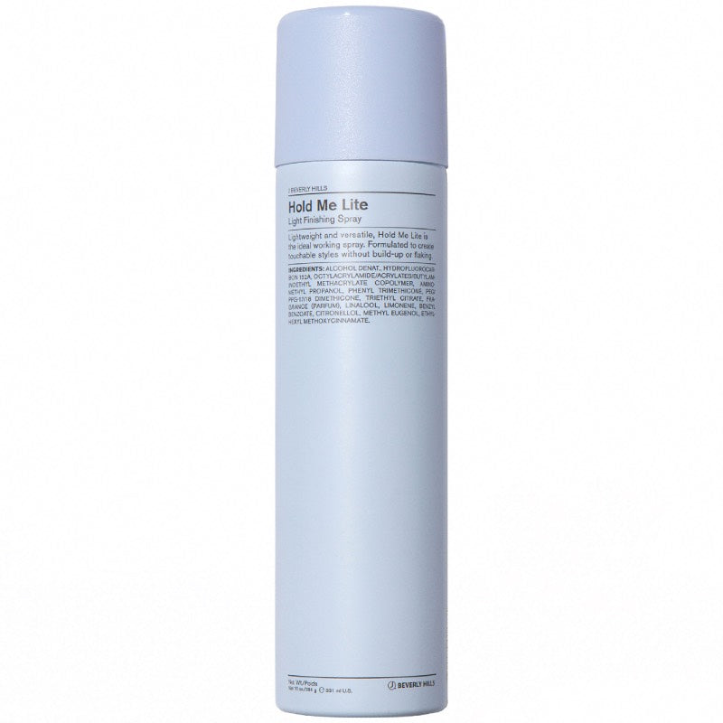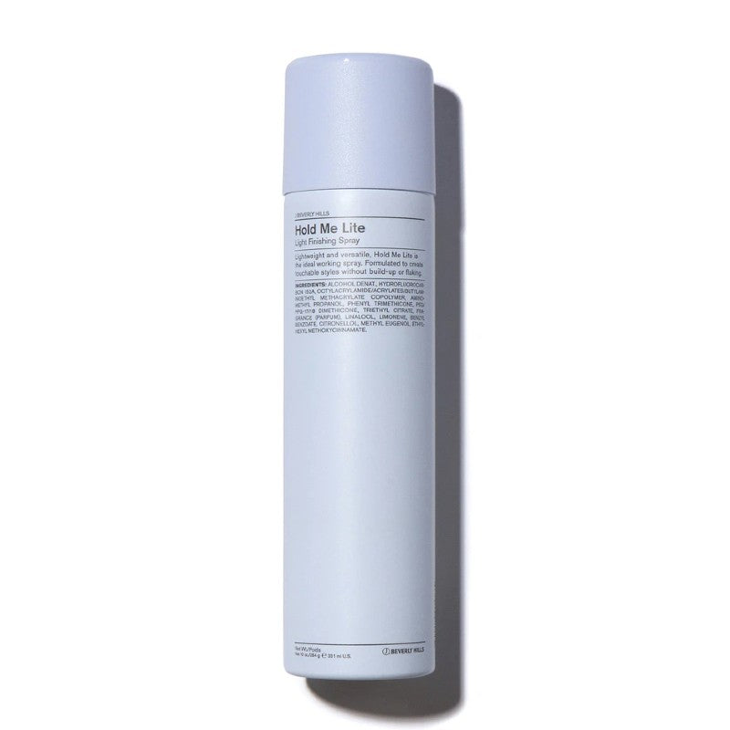 J Beverly Hills Hold Me Lite Finishing Spray geeft het haar een lichte fixatie, flexibiliteit en een natuurlijke glans.