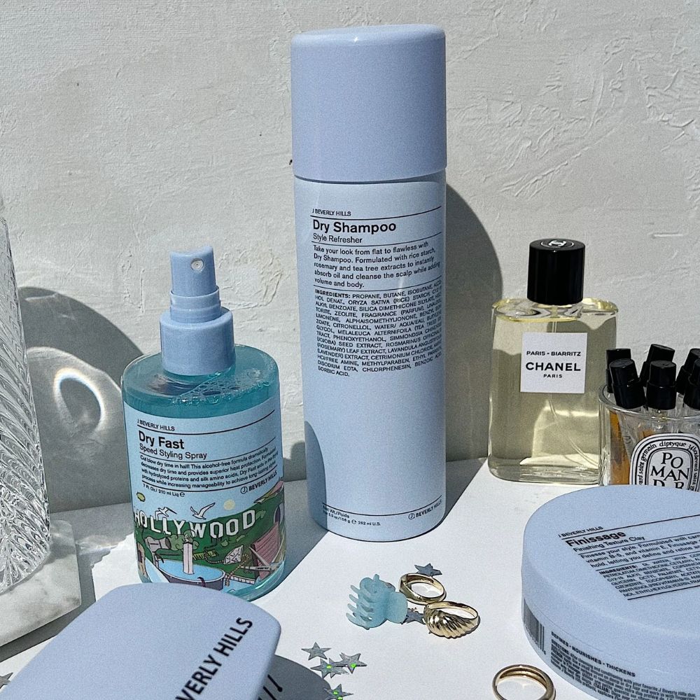 Na wassen en conditioning met je favoriete J Beverly Hills producten, verdeel het haar in sectie’s, spray Dry Fast gelijkmatig over het vochtige haar en fohn in model zoals gewenst.