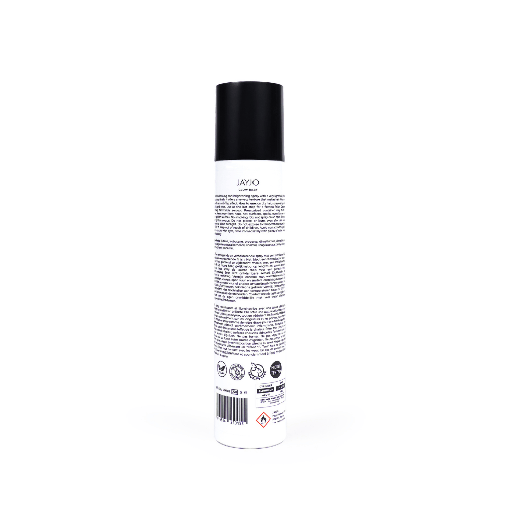 JAYJO Glow Baby Argan Oil Shine Spray is een verzorgende finishing spray die je haar direct laat stralen. Perfect voor een glanzende, gezonde uitstraling zonder het haar te verzwaren.