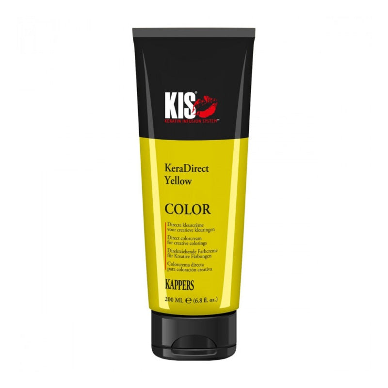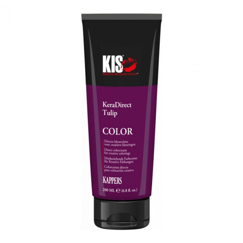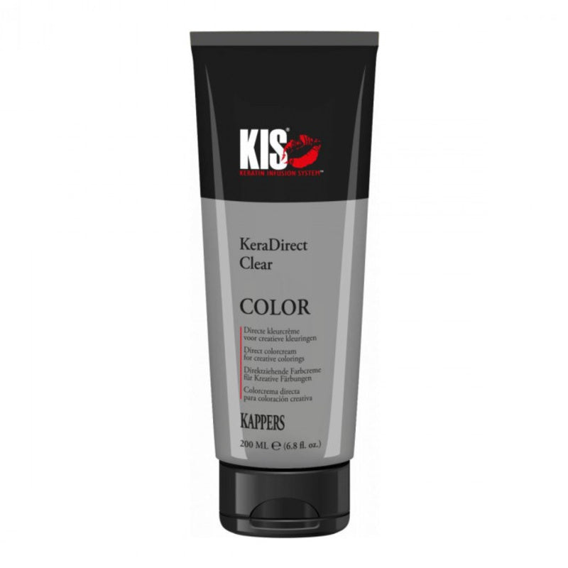 Kis KeraDirect is perfect om eenvoudig modetinten de creëren! Kis KeraDirect is gemaakt van ontwikkelde kleurpigmenten en daardoor meteen klaar voor gebruik. U kunt de kleuren direct of met elkaar mengen, om de perfecte tint te creëren. Bent u op zoek naar een lichtere kleur of meer pasteltint? Meng dan een kleur van Kis KeraDirect met de Clear variant. Kis KeraDirect kan op zowel licht als donker haar worden aangebracht, maar op lichter haar is de kleur wel mooier zichtbaar. De kleur blijft 2 tot 3 wasbeurten mooi.
