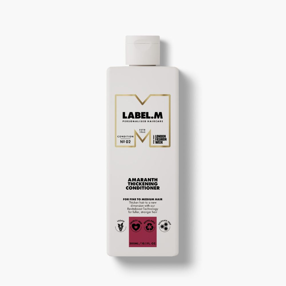 Dunner of futloos haar krijgt een krachtige boost met de Label.M Amaranth Thickening Conditioner 1000ml. Deze verdikkende conditioner is speciaal ontwikkeld om fijn of zwak haar zichtbaar voller, steviger en gezonder te maken. Dankzij het unieke energizing complex – met onder andere amaranth, zijdeproteïne en soja – wordt het haar versterkt vanaf de wortel en krijgt het volume zonder stijf of zwaar te worden.