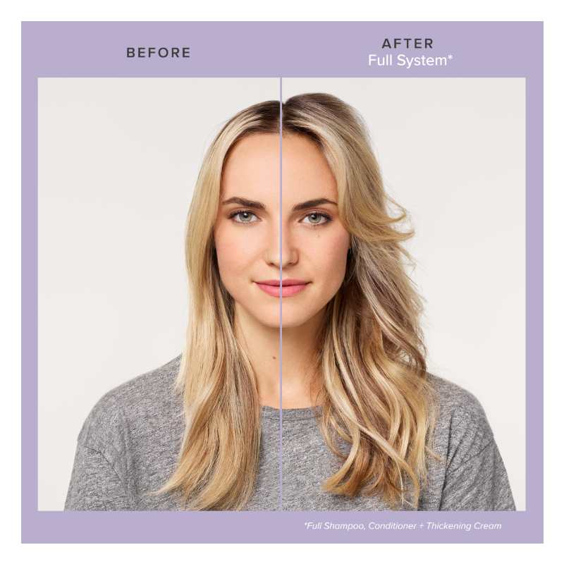 Een zacht, maar grondig reinigende shampoo die helpt om fijn en plat haar er voller en dikker uit te laten zien.