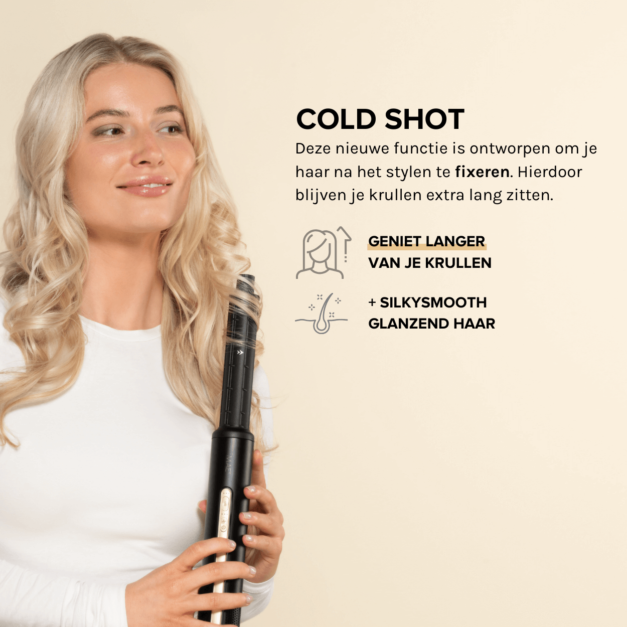 Of je nu snel wilt drogen, volume wilt creëren of speelse krullen wilt stylen: met de MAE Airstyler II is het allemaal mogelijk, zonder losse föhn, krultang of borstel. De Coldshot-functie zorgt voor een langdurige hold, terwijl de negatieve ionentechnologie pluizig haar voorkomt en je lokken een silky smooth finish geeft.