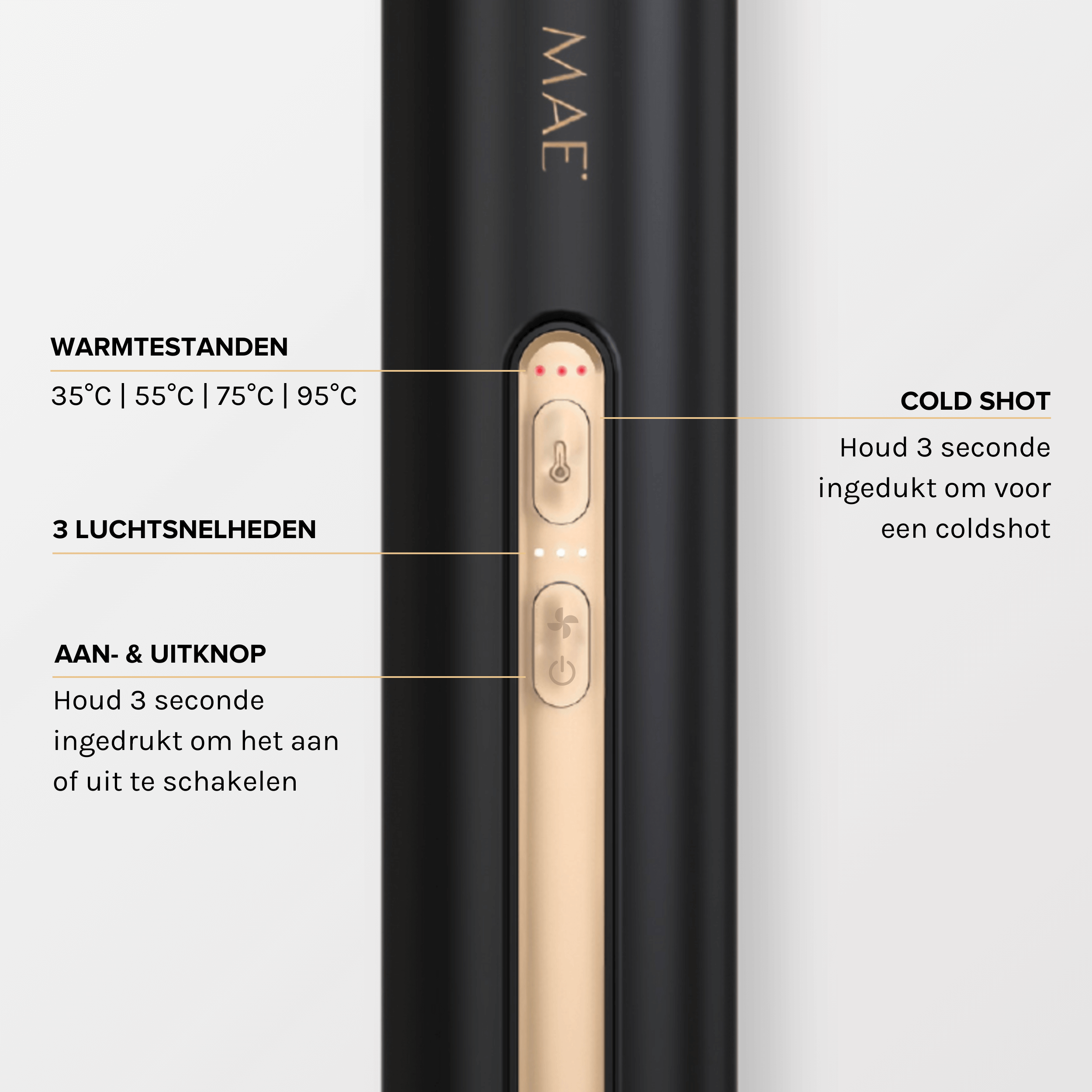 Met de MAE Airstyler II creëer je iedere dag opnieuw een professionele look zonder moeite. Je haar voelt zacht aan, oogt gezond en blijft langdurig in model, zonder hittebeschadiging of pluizen. Perfect voor een gladde blow-out, gedefinieerde krullen of extra volume, allemaal met één compacte tool.