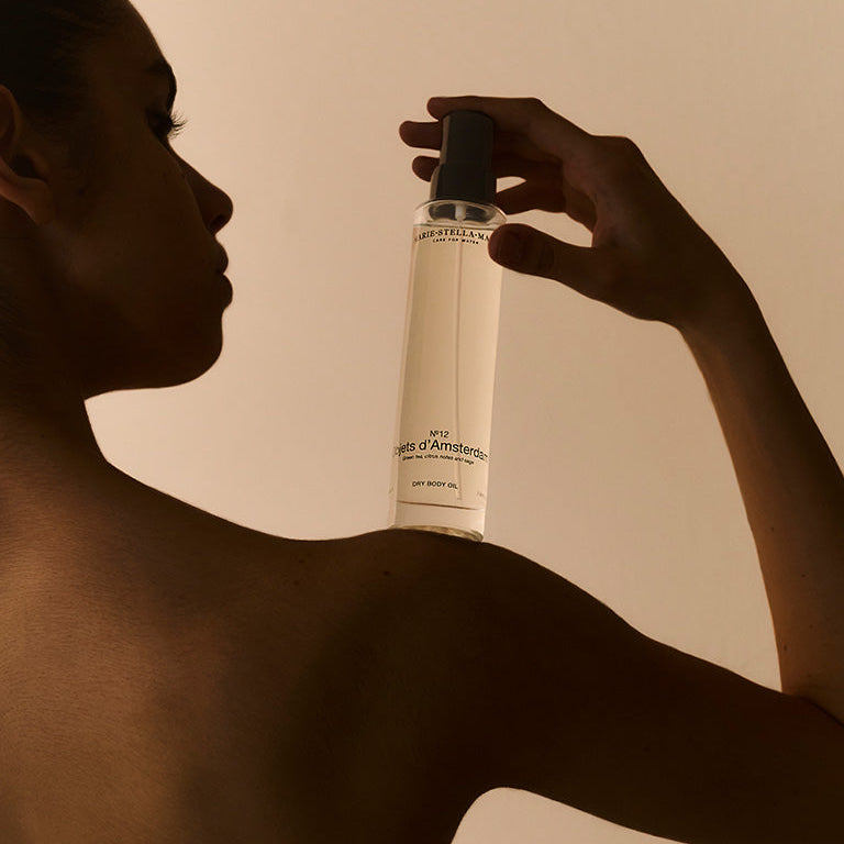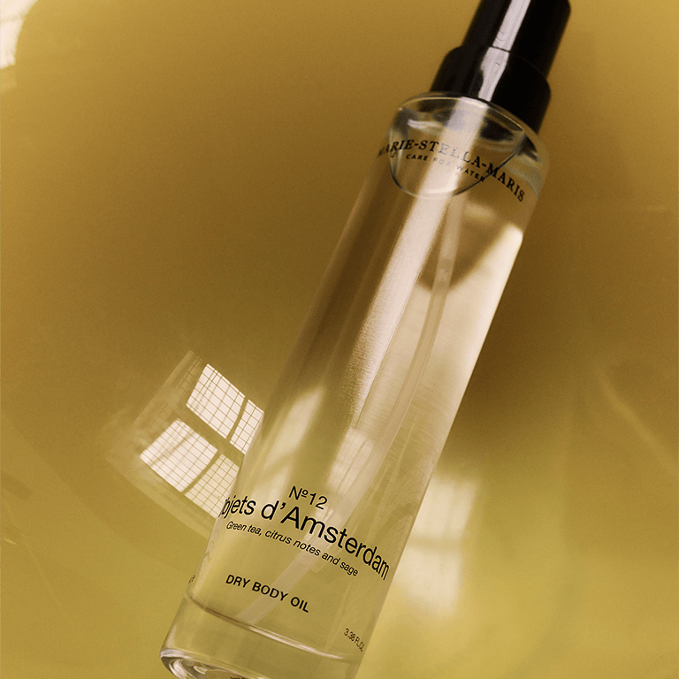 Ontdek de luxe verzorging van Marie-Stella-Maris Dry Body Oil Objets d'Amsterdam. Deze huidolie voor de droge huid trekt direct in en biedt langdurige hydratatie met een zijdezachte finish. De formule is verrijkt met natuurlijke ingrediënten zoals gouden zeewier, zoete amandelolie en upcycled cactusvijgolie, rijk aan vitamines A en E.