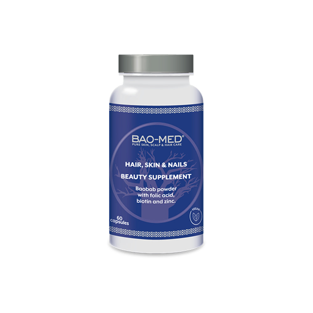 Een bao-med voedingssupplement voor sterker haar, sterke nagels en een gezonde huid.