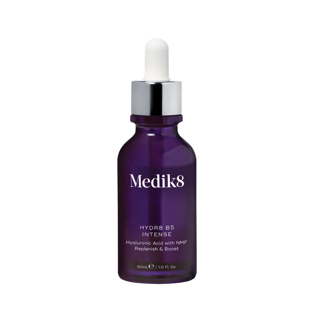 Medik8 Hydr8 B5™ Intense 30ml is een snel-absorberend serum met zijdezachte textuur dat van huidoppervlak tot de diepere huidlagen hydrateert. De combinatie van multi-gewicht hyaluronzuur en vitamine B5 werkt op meerdere niveaus om water naar de huid te trekken en te binden. Fijne lijntjes en rimpels worden zichtbaar voller waardoor de huid er soepel, hersteld en gevoed uitziet. Geschikt voor alle huidtypen.