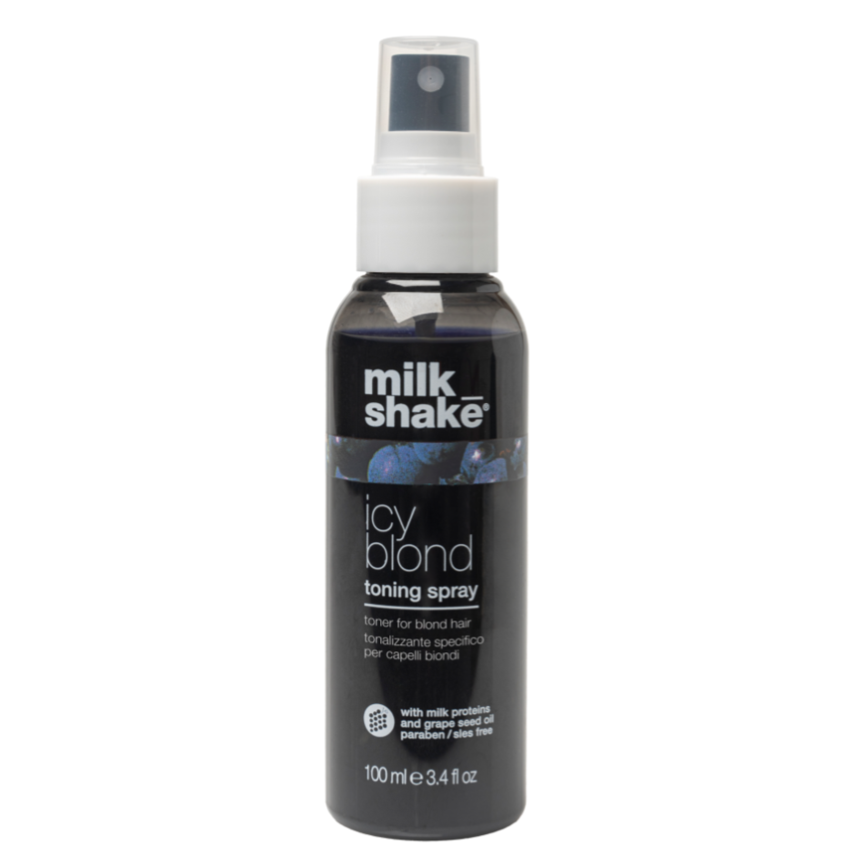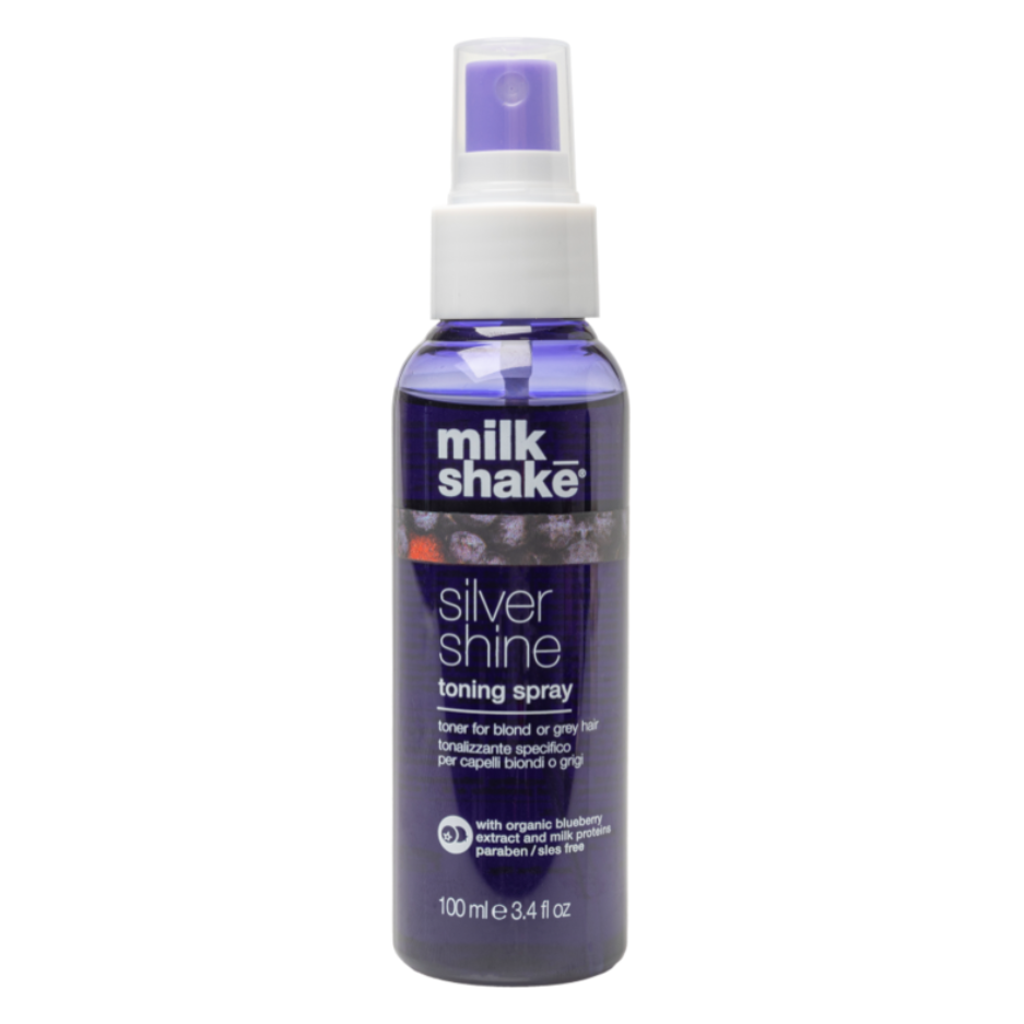 Milk_Shake Toning Spray is dé leave-in spray voor blond, geblondeerd en grijs haar die warme en gele tonen effectief neutraliseert zonder uit te spoelen. Deze multitasker combineert de kracht van violet pigmenten met voedende ingrediënten zoals melkproteïnen, moringa-olie en druivenpitextract om je haar te beschermen, hydrateren en de kleur fris en koel te houden. Perfect als snelle touch-up tussen wasbeurten of als aanvulling op je zilvershampoo-routine.