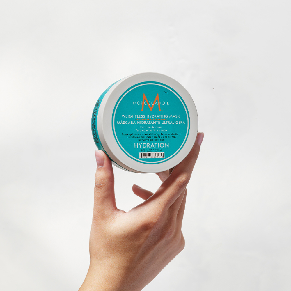 Ontdek Moroccanoil Weightless Hydrating Mask, een hydraterend en conditionerend haarmasker dat de elasticiteit van het haar verbetert, zonder het te verzwaren.