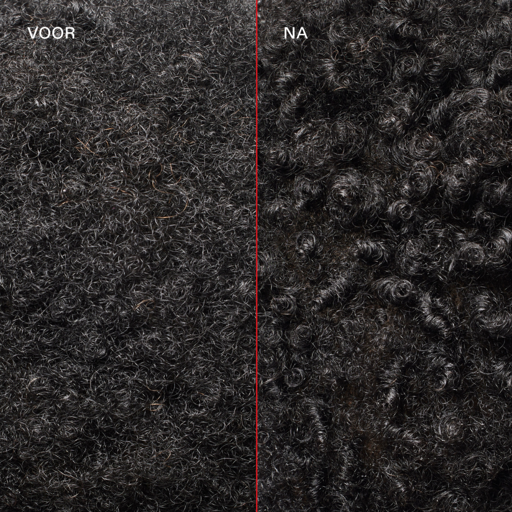 1. Gebruik een kleine hoeveelheid om vochtig haar (dit is een must anders werkt het product niet optimaal) en werk vanaf de punten tot de aanzet. Gebruik meer voor langer, dikker haar.