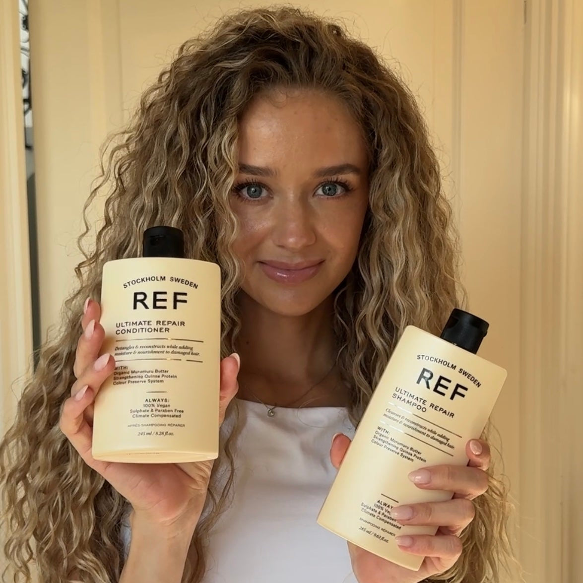 REF Ultimate Repair Shampoo is een shampoo die ervoor zorgt dat droog en beschadigd haar weer een nieuw leven in wordt geblazen. Deze shampoo beschikt namelijk over een speciale formule van plantaardige extracten, zoals bosbessen, walnoot, tamanu en arganolie, dat ervoor zorgt dat het beschadigde haar weer helemaal wordt hersteld en er weer verzorgd en gezond uit ziet. De REF Ultimate Repair Shampoo is in combinatie te gebruiken met de REF Ultimate Repair Conditioner voor een optimaal herstellend resultaat. De shampoo is vrij van SLS en parabenen.