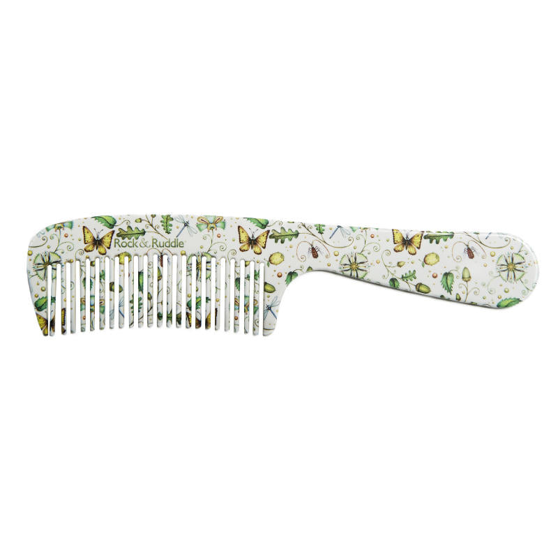Rock & Ruddle Kam met Handvat Vlinders & Natuur is een kwalitatieve kam met een vrolijk design. Het is een praktische kam voor dagelijks gebruik. Rock & Ruddle Kam met Handvat Vlinders & Natuur is niet de enige in zijn design, er is nog een zakkam en een grove kam in dit design verkrijgbaar.