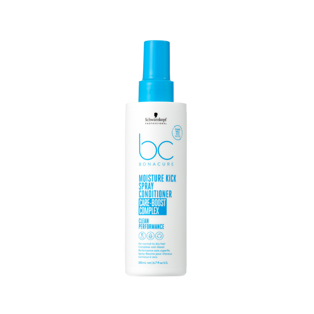 De Schwarzkopf Professional Bonacure Moisture Kick Spray Conditioner is de perfecte oplossing voor droog en stug haar dat een hydratatieboost nodig heeft.