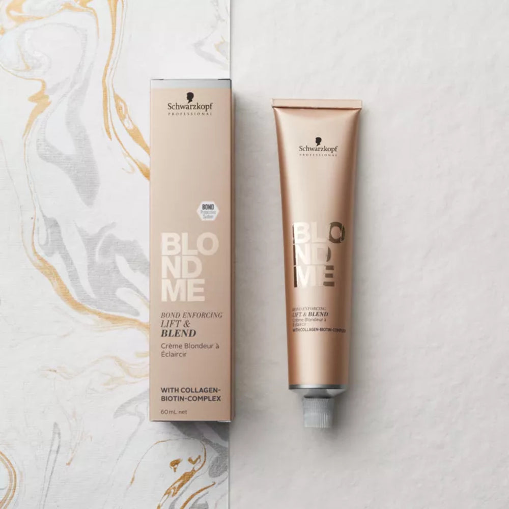 Schwarzkopf BlondMe Lift & Blend zorgt voor ultra lichtblond haar met maximale grijsdekking. De enige highlift lijn voor matuur blond haar met tot 4 niveaus van lift en optimale witte blending. Het combineert onze vertrouwde Bond Endforcing Technologie met een Collageen Biotine Complex om aan de specifieke behoefte van ouder wordend haar te voldoen en beschadiging te minimaliseren.