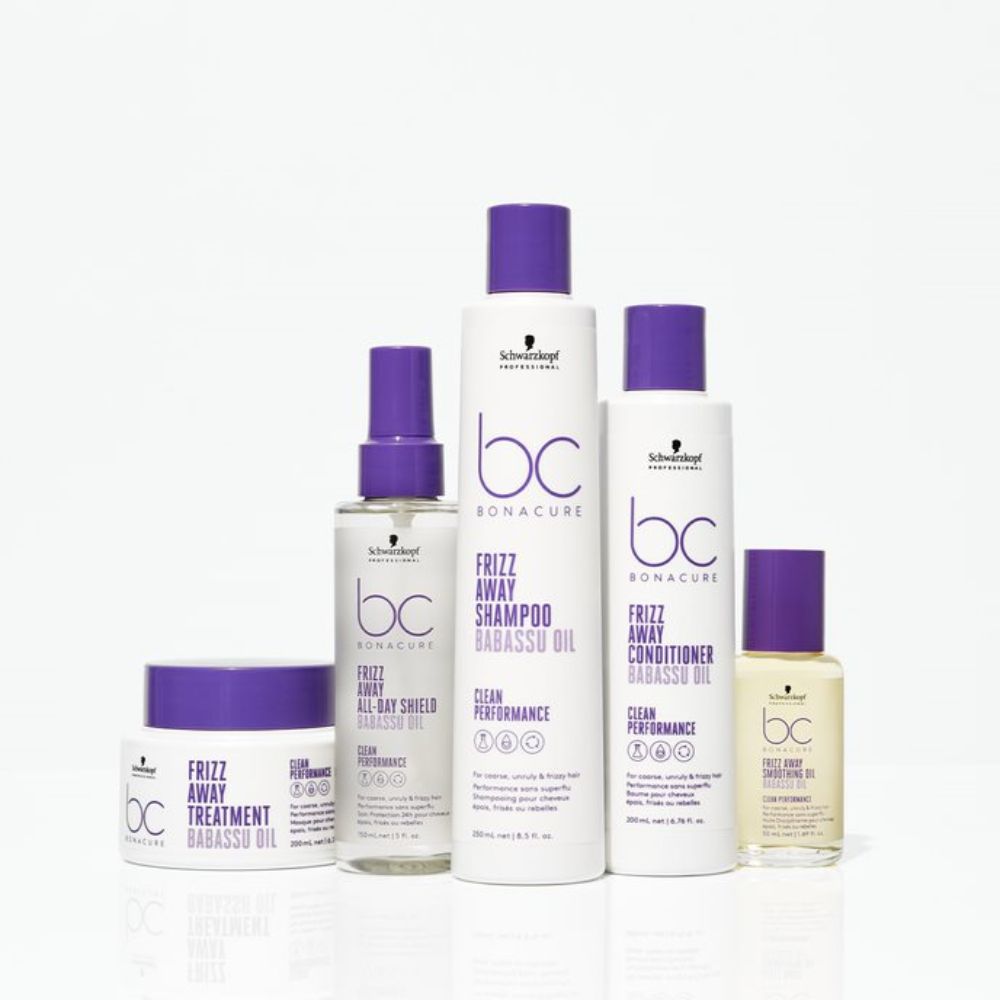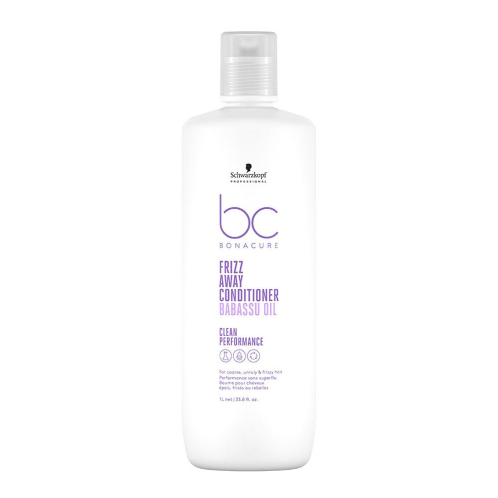 Schwarzkopf Professional Bonacure Frizz Away Conditioner is een conditioner tegen pluizig haar. Deze vegan conditioner is speciaal ontwikkeld om weerbarstig haar te ontklitten en pluisvrij te maken. Het haaroppervlak wordt geëgaliseerd en verzacht waardoor pluis tot 72 uur effectief wordt verminderd. De formule bevat babassu-olie om de elasticiteit en glans van het haar verbeteren. Babassu-olie is rijk aan antioxidanten en houdt vocht vast zodat het haar glad en pluisvrij wordt.