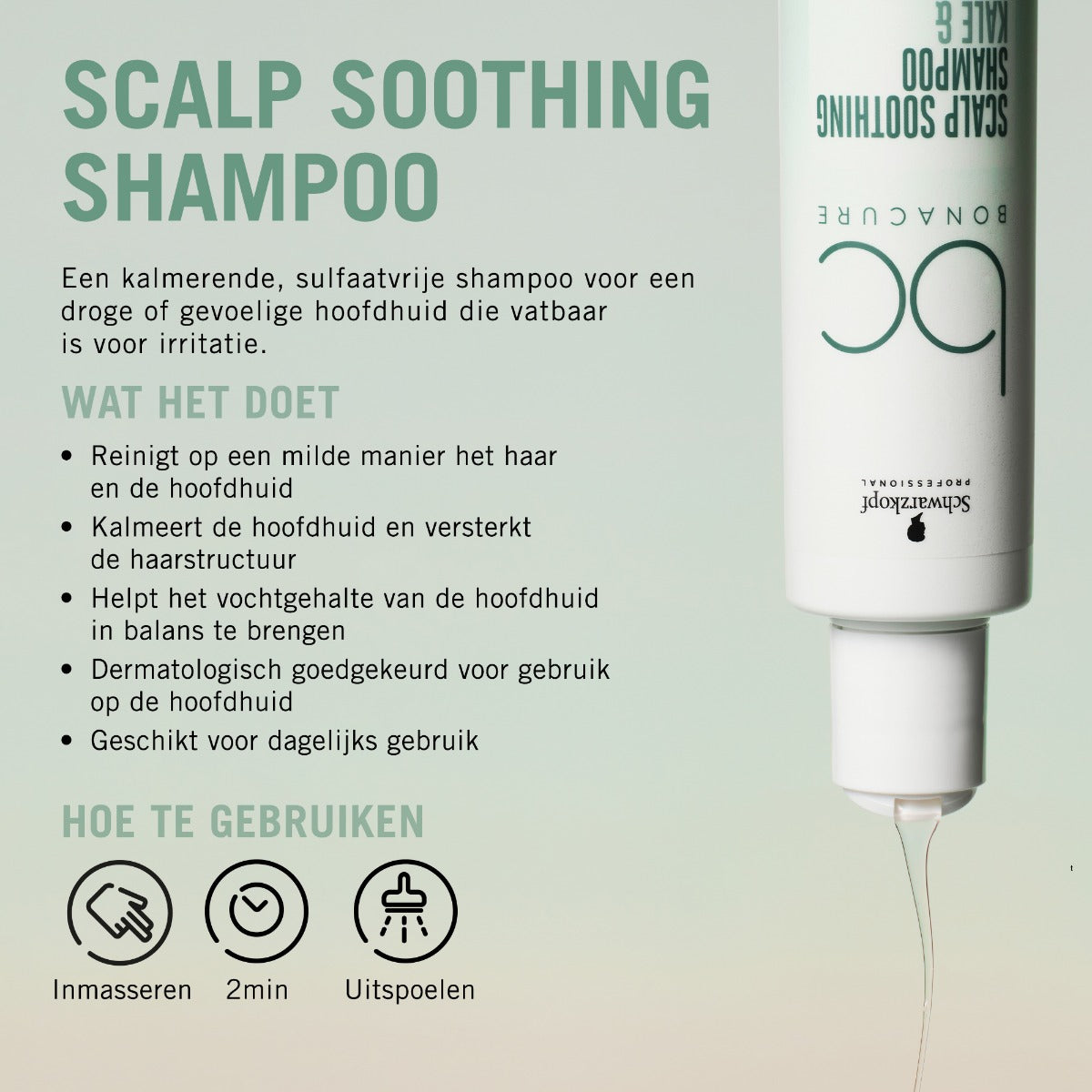 Schwarzkopf Bonacure Scalp Soothing Shampoo is een zachte, verzorgende shampoo, speciaal samengesteld voor de gevoelige hoofdhuid. Deze formule is vrij van agressieve sulfaten, siliconen en kunstmatige kleurstoffen, wat het ideaal maakt voor dagelijks gebruik. Het reinigt het haar zacht, terwijl het de gevoelige hoofdhuid verzacht en kalmeert. Deze shampoo is jouw dagelijkse partner voor een gezonde hoofdhuid en glanzend, levendig haar.